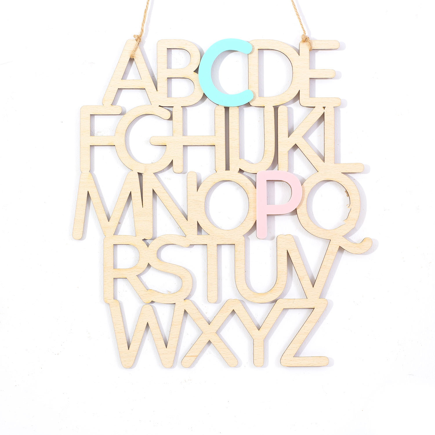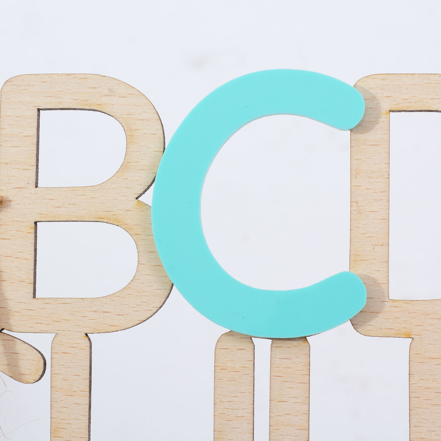 Abecedario y números de madera perfectos para decorar la pared de una habitación infantil.