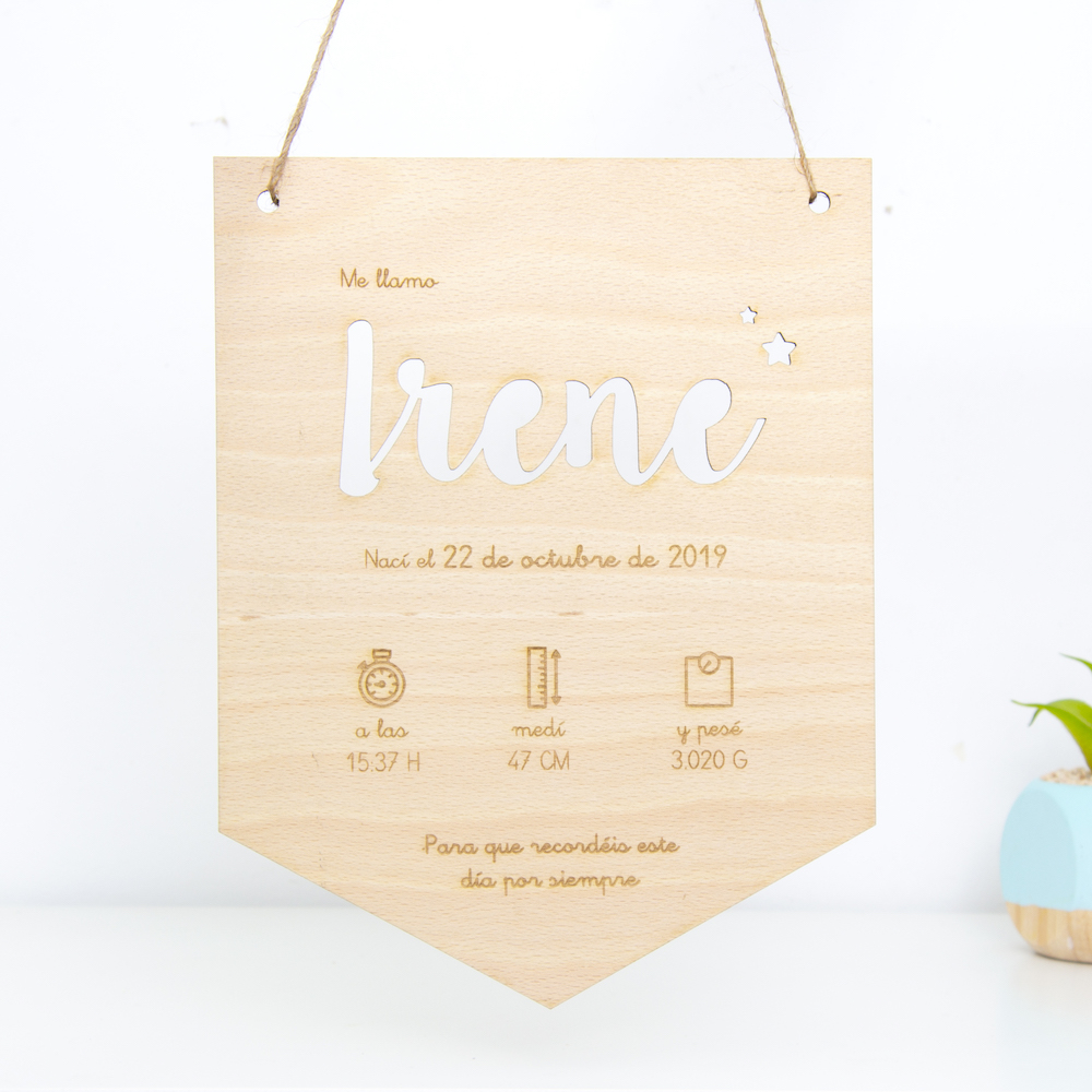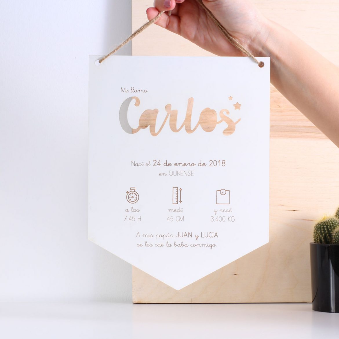 Inmortaliza ese momento inolvidable de cualquier padre con esta banderola de nacimiento personalizada y decora cualquier rincón de tu casa de la forma más original
