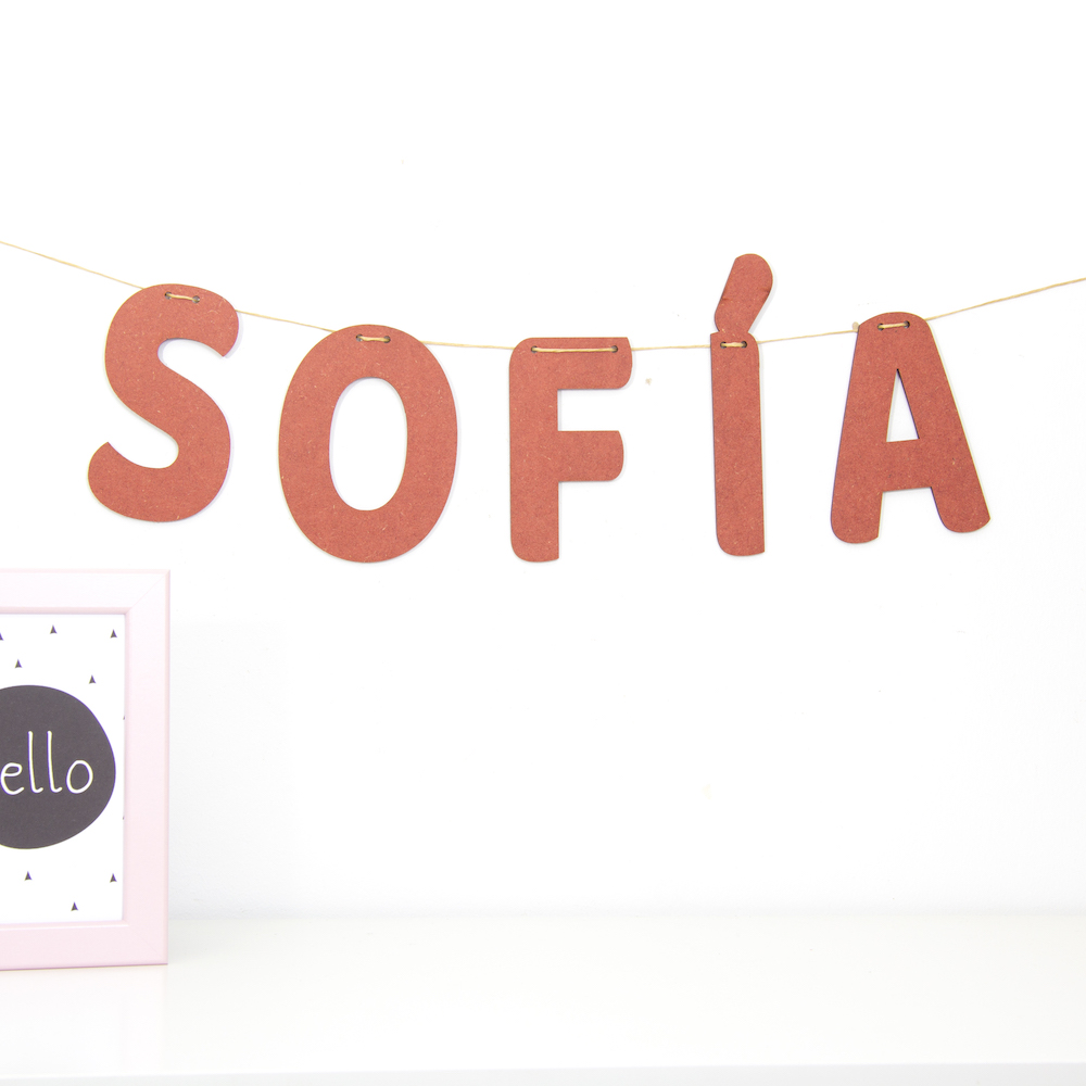 Colocación: cada una de ellas cuenta con dos agujeros en su parte superior que permiten colgarlas de forma continuada formando la palabra o frase que quieras.