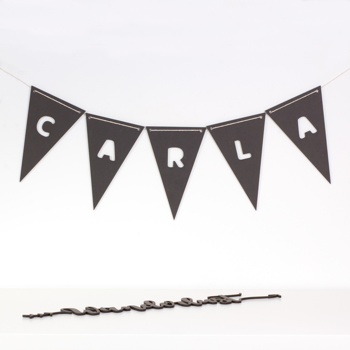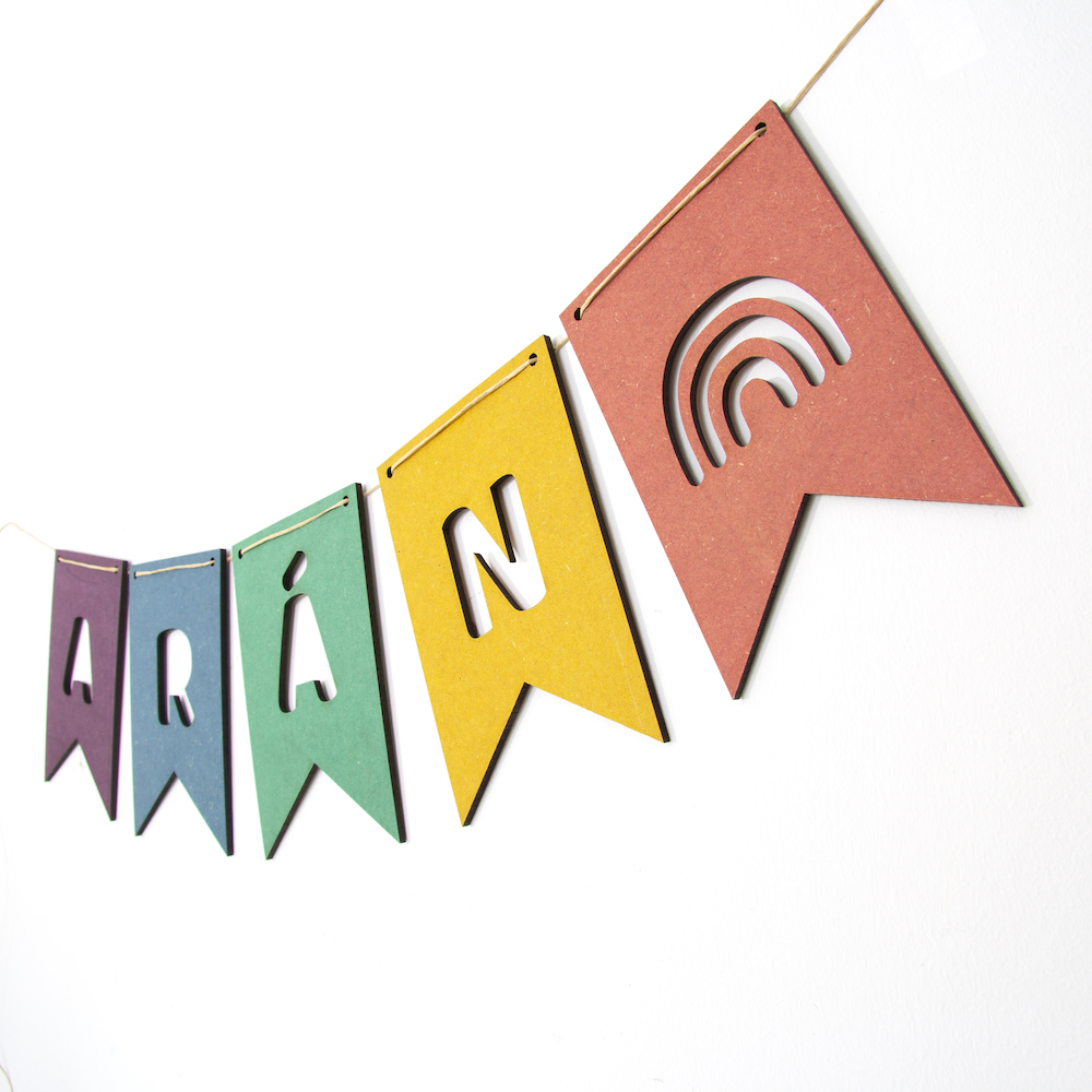 Una pared vacía, una cuna un poco sosa o una fiesta de baby shower… cualquier rincón y ocasión es buena para colocar estas originales banderolas de madera personalizadas con el nombre de tu pequeño.