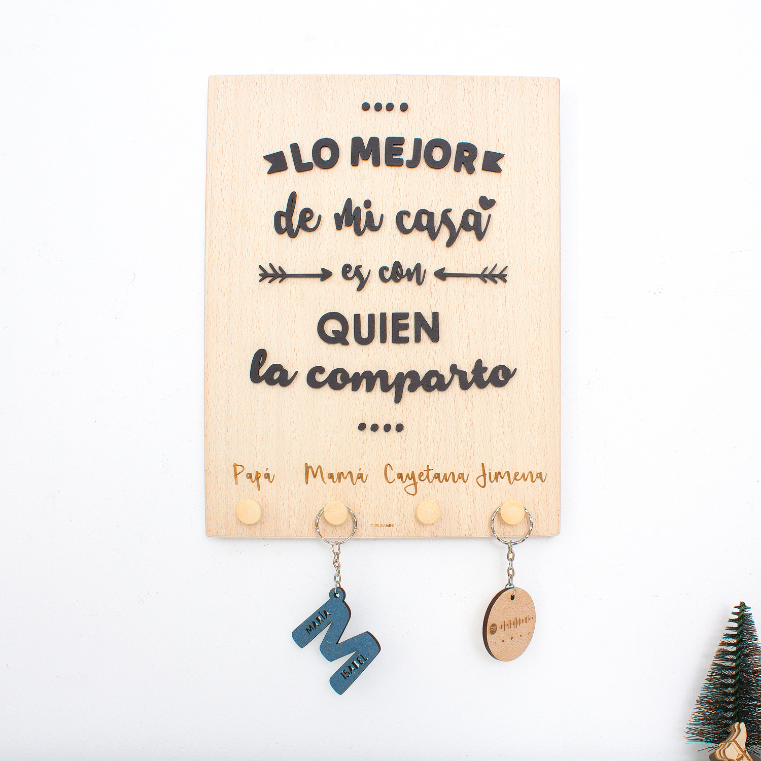 Original y práctico cuadro cuelgallaves personalizado, realizado en madera, para colocar en la entrada de casa y tener siempre las llaves localizadas y en orden.