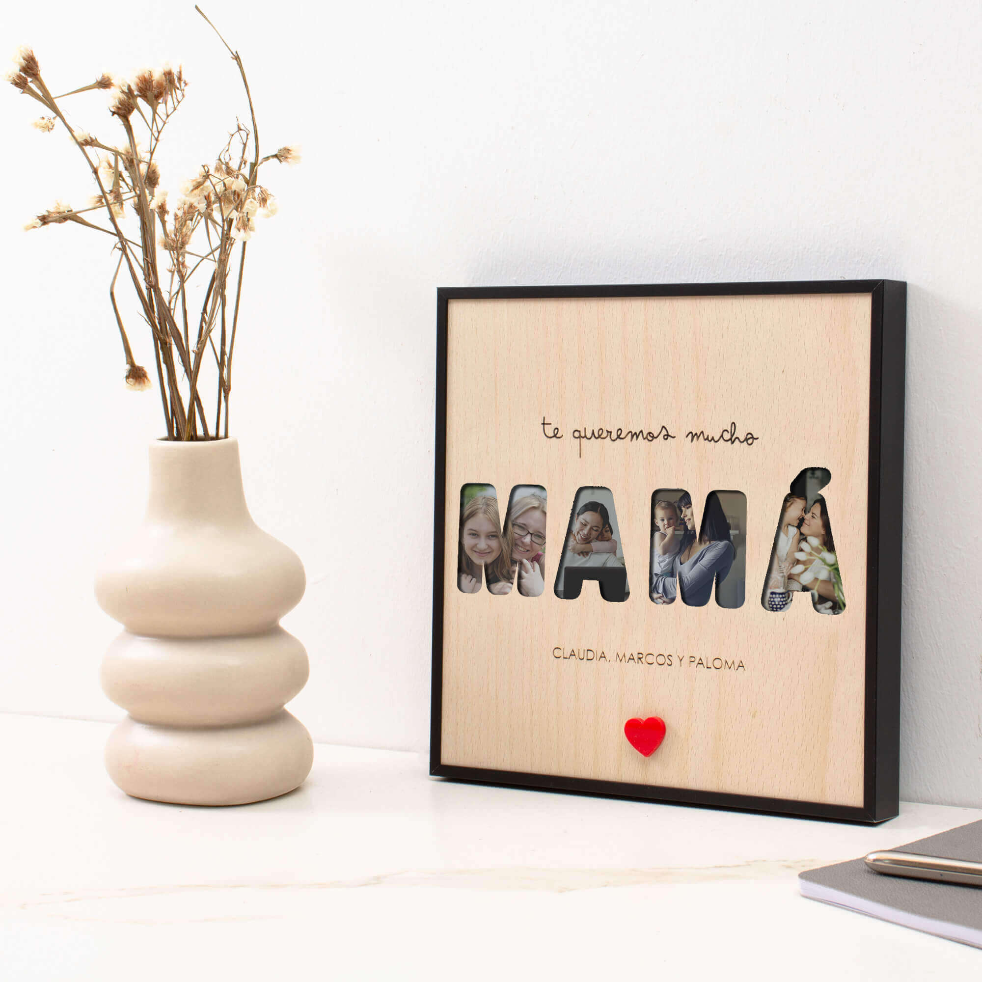 Este collage es mucho más que un simple regalo. Es un abrazo permanente para mamá, le recuerda, con tus propias palabras, que aunque el tiempo pase, siempre estarás cerca.