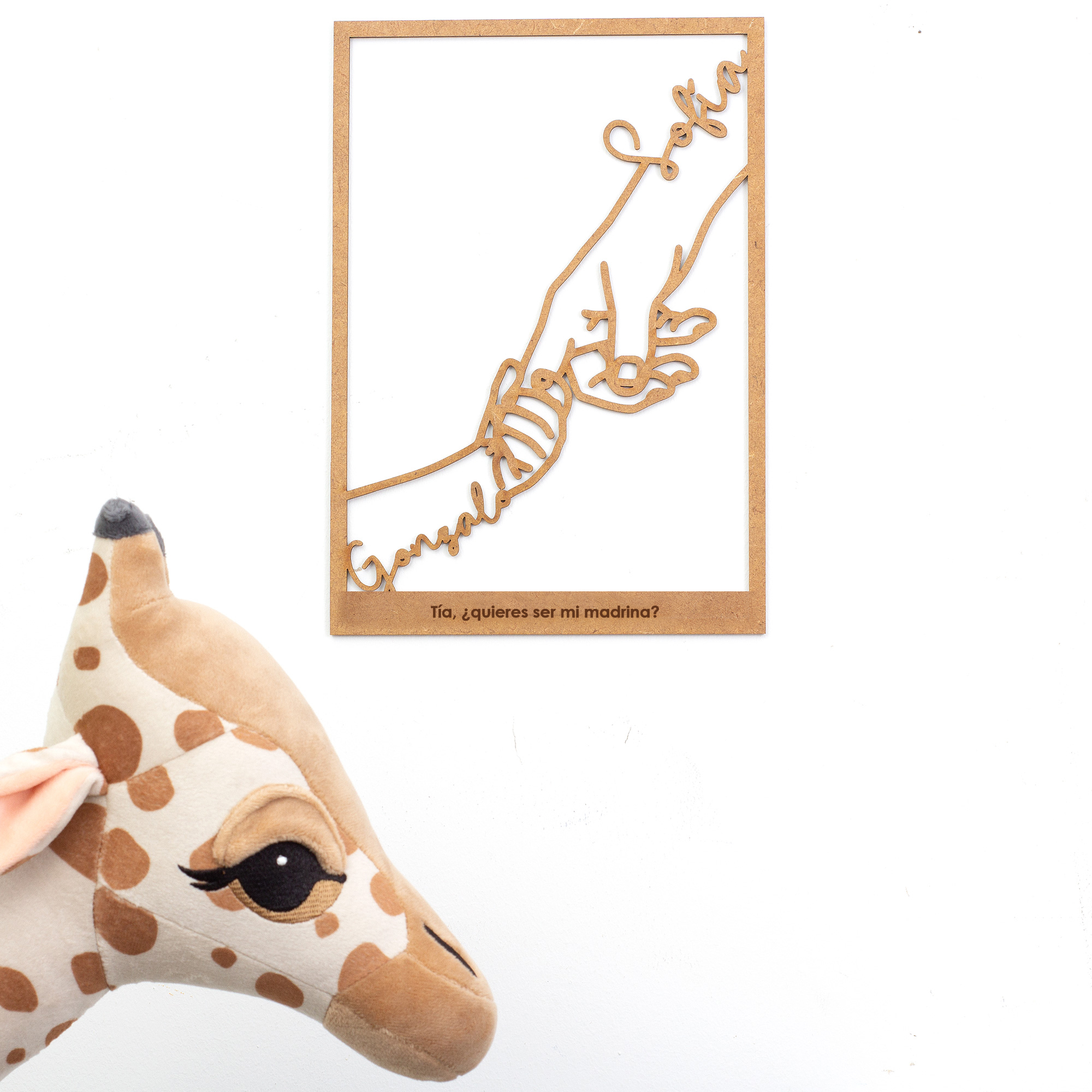 Escribe aquí los nombres para la personalización y la posición en caso de ser necesario. Ej.1: Sonia (mano pequeña), Madrina (mano grande)