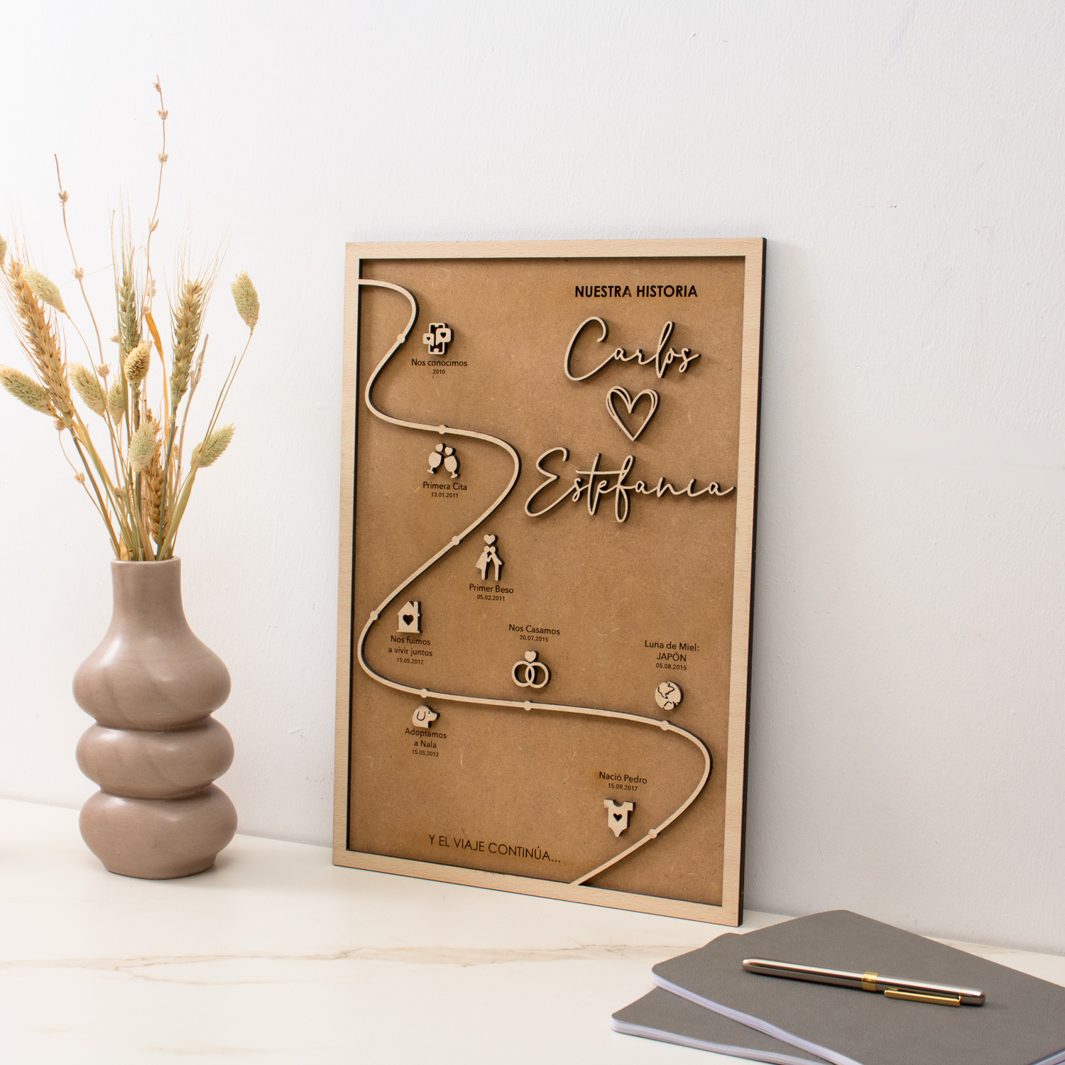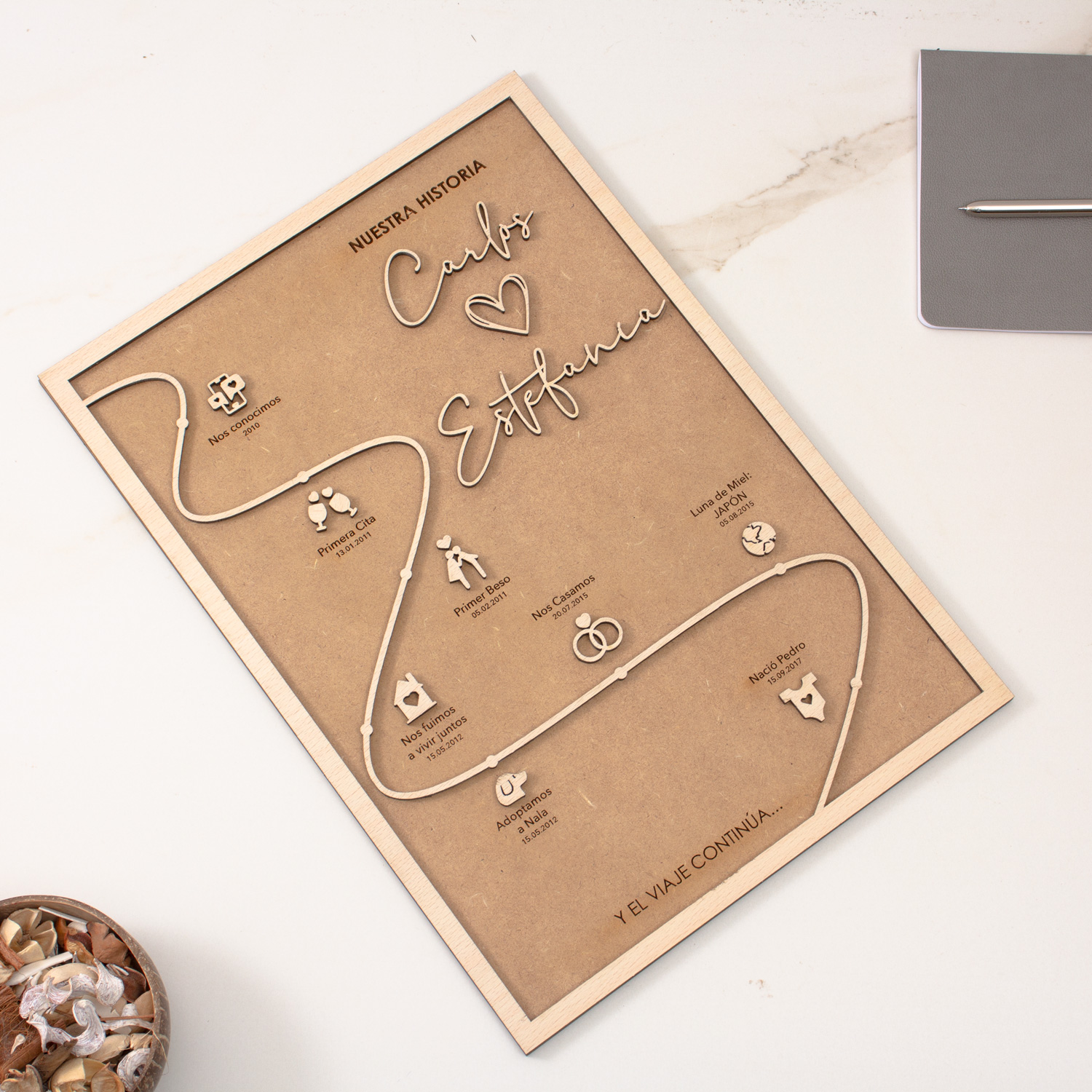 Cuadro Nuestra historia en Pareja Personalizado en Madera