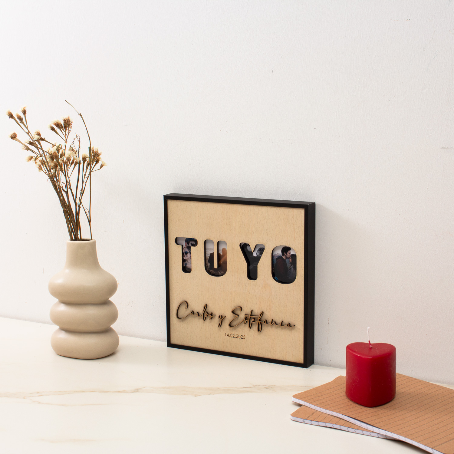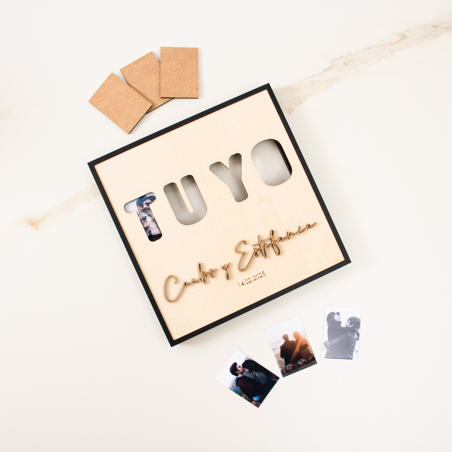 Pero este marco de fotos con vuestros nombres personalizados, mide más o menos lo mismo y te aseguro que está mejor.