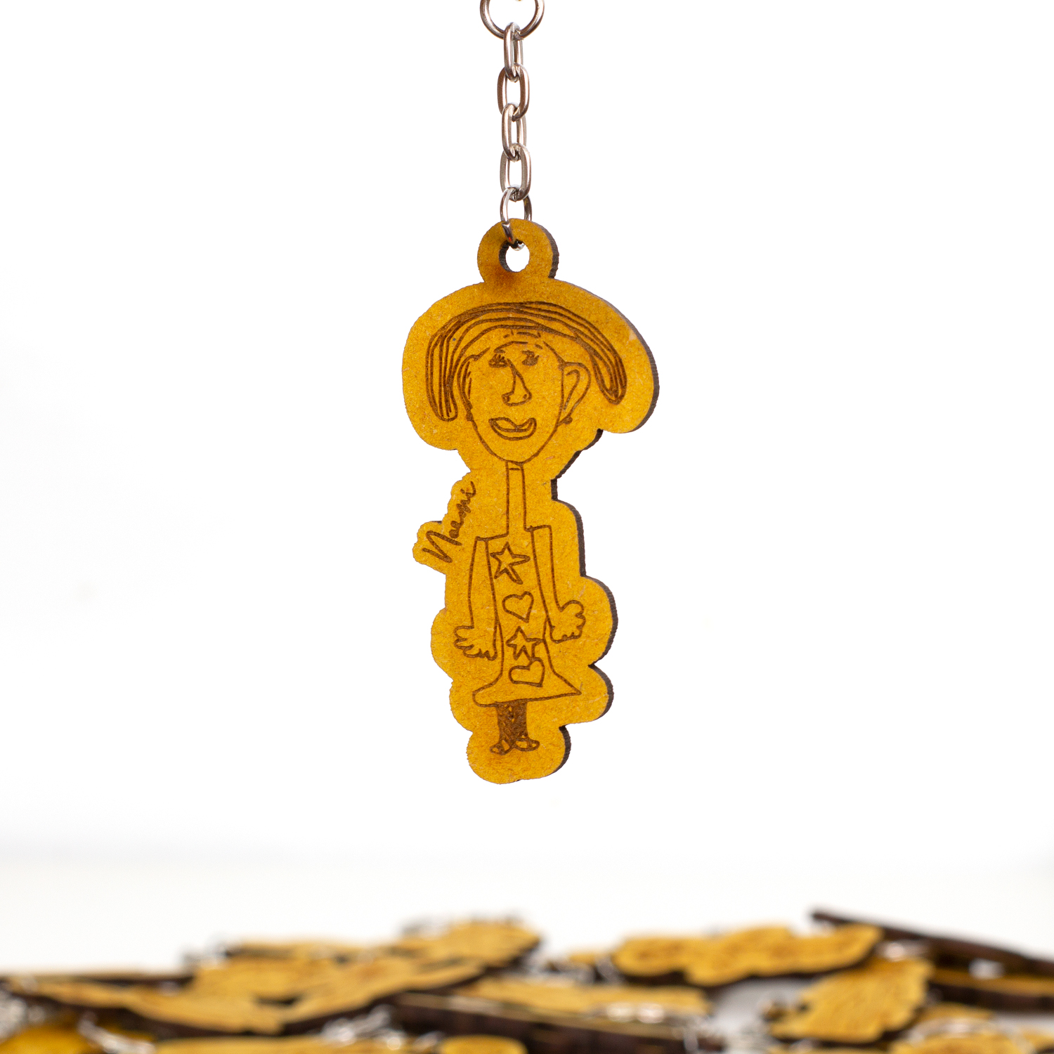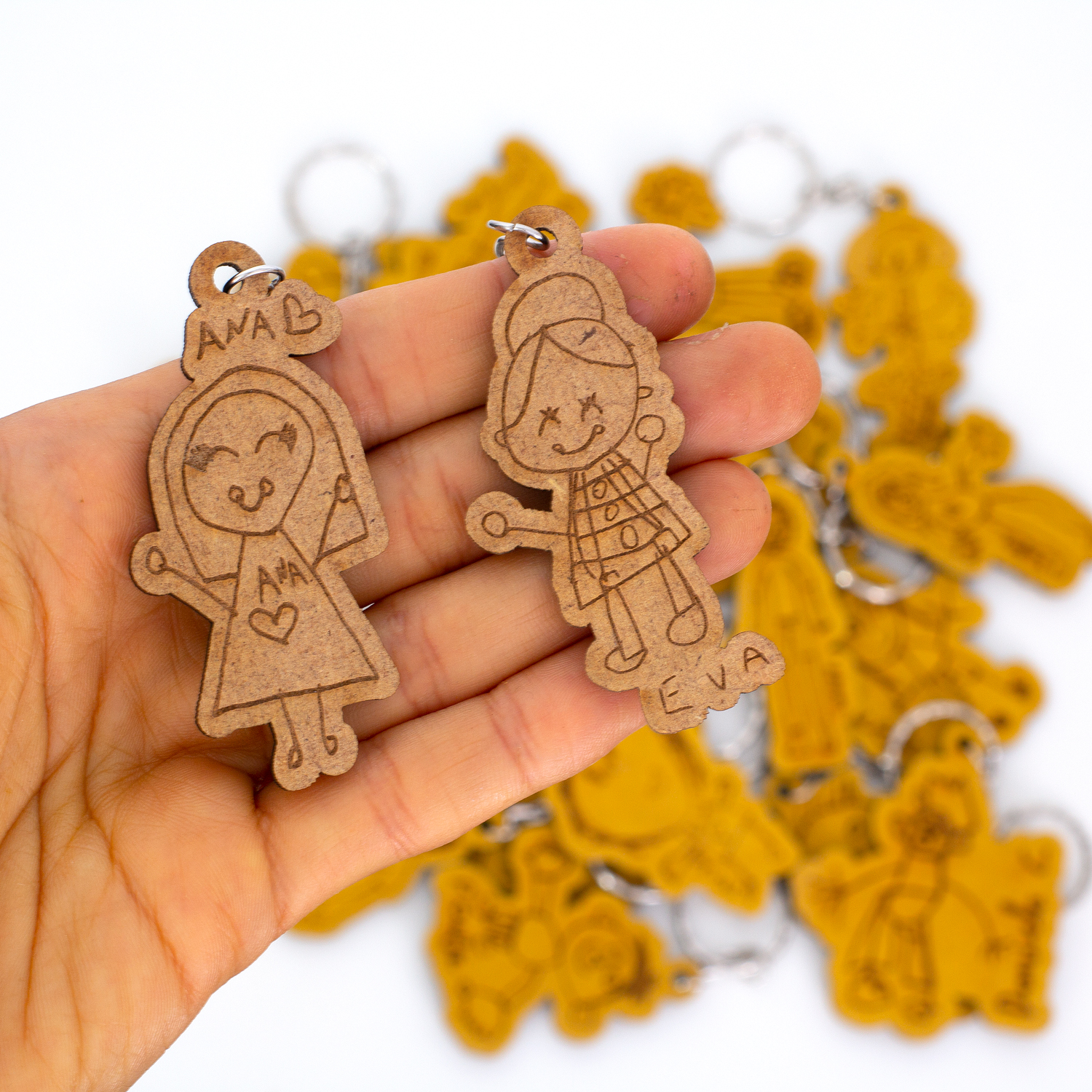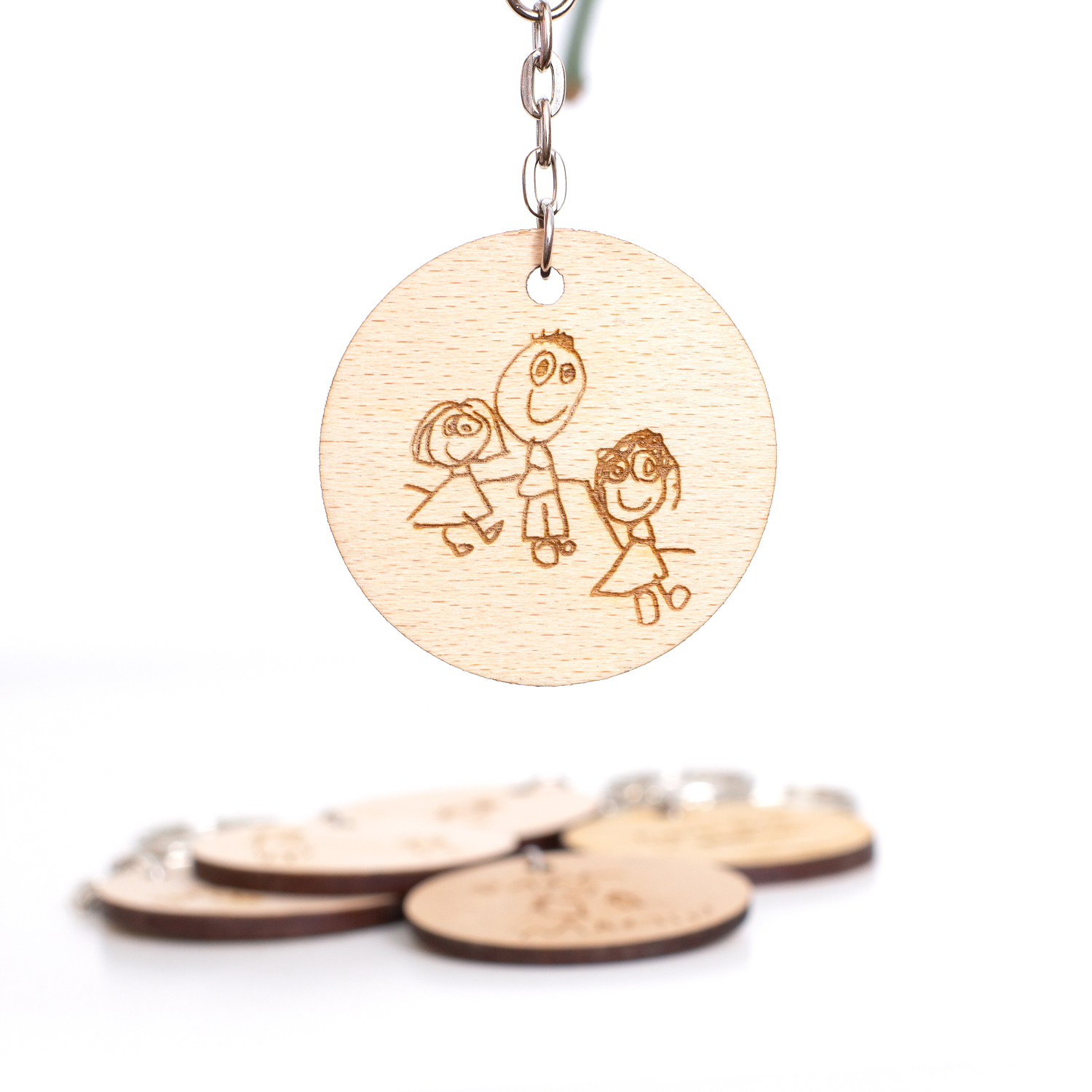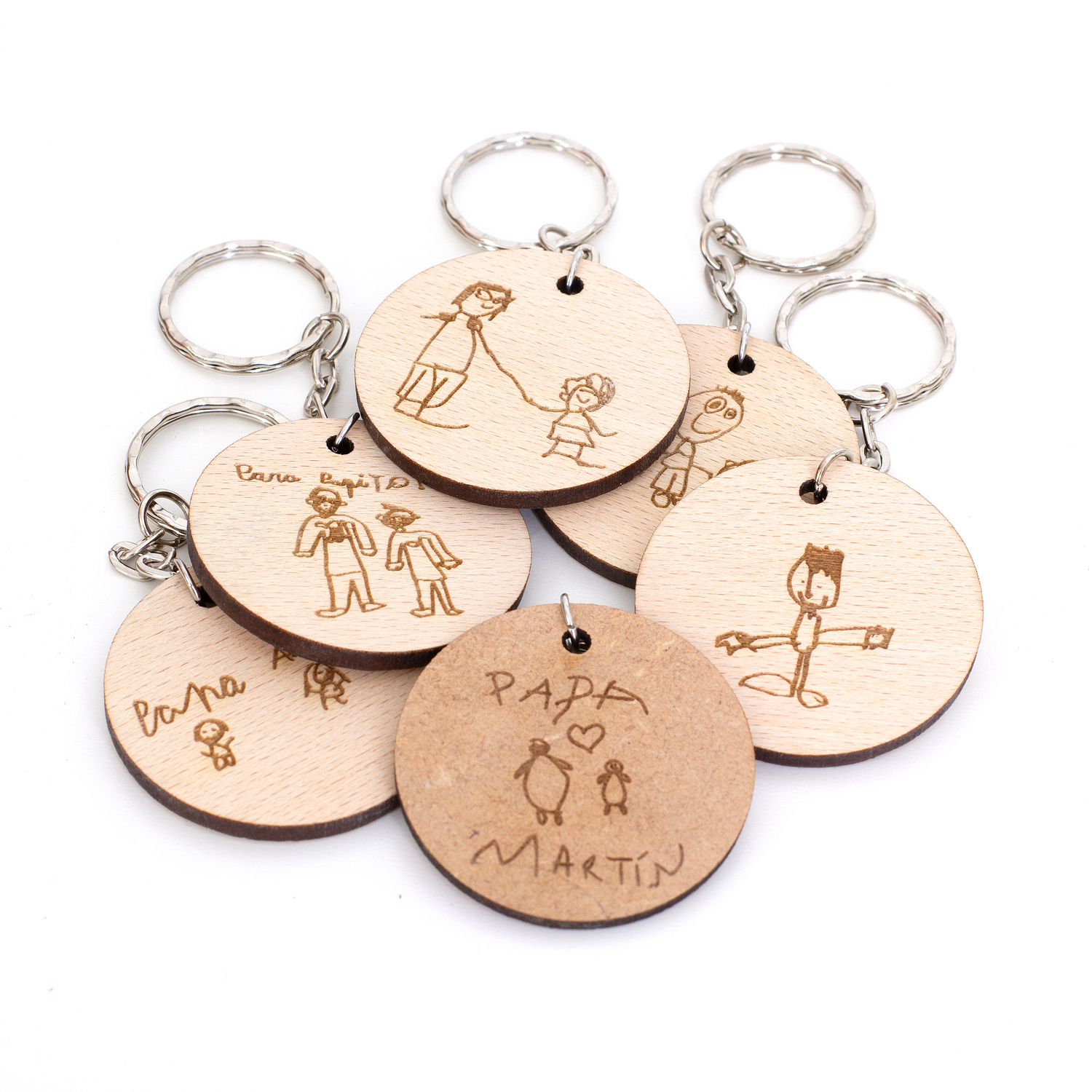 Envíanos un dibujo realizado por el peque y lo transformaremos en un llavero de madera que permanecerá contigo para siempre.