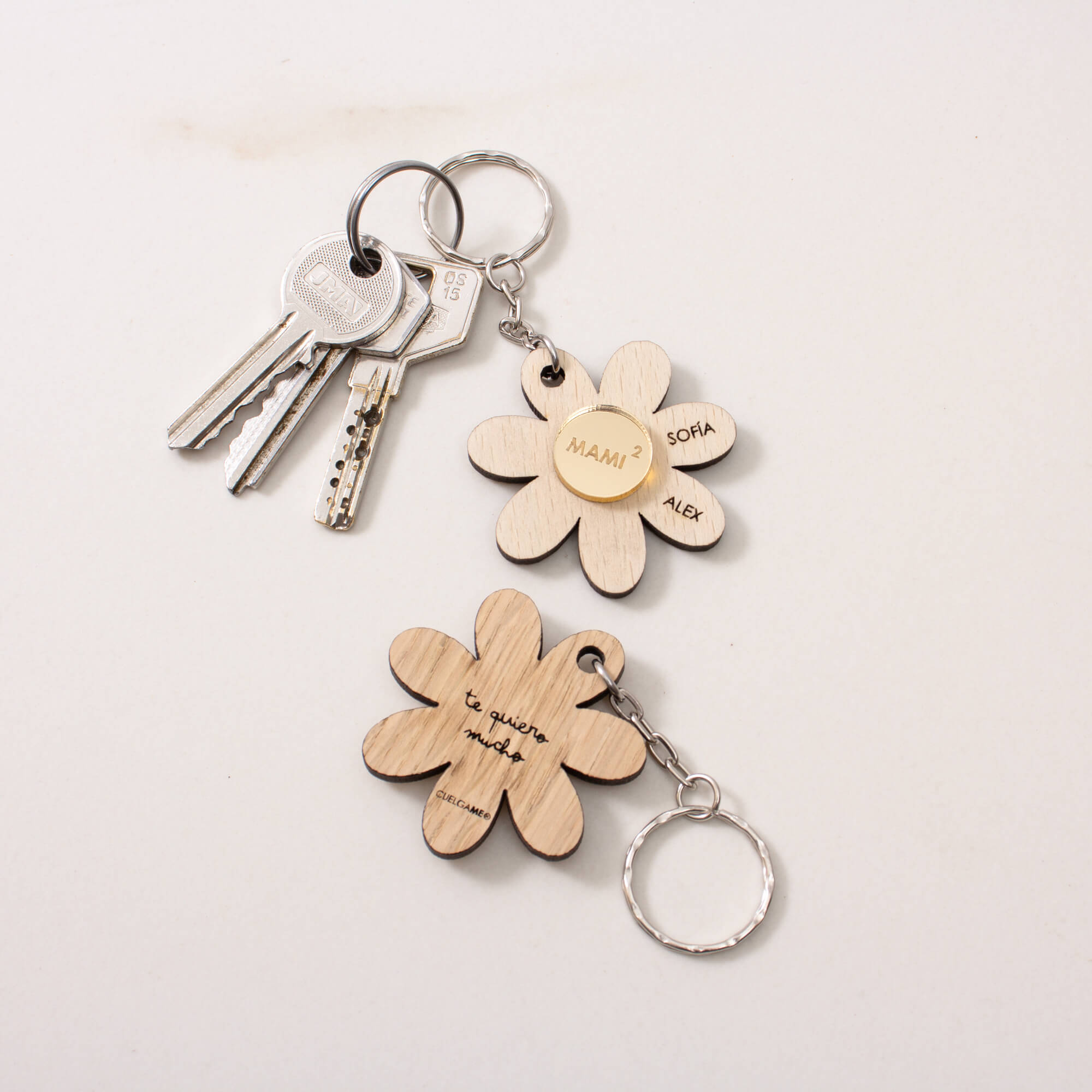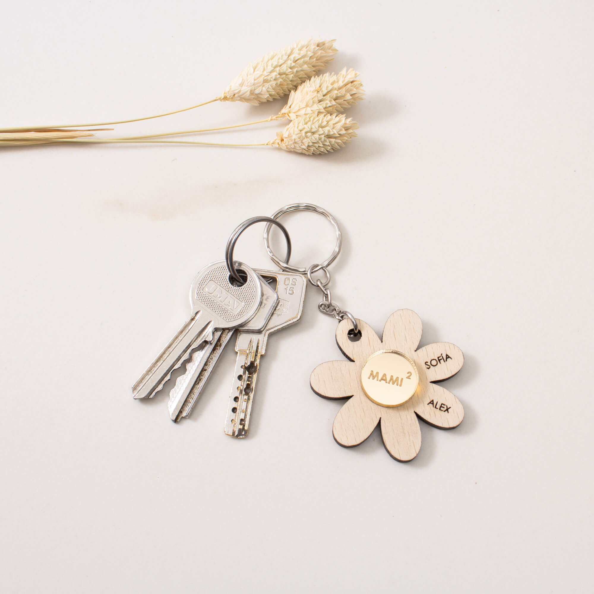 Llavero Madera Flor para Mamá y Abuela