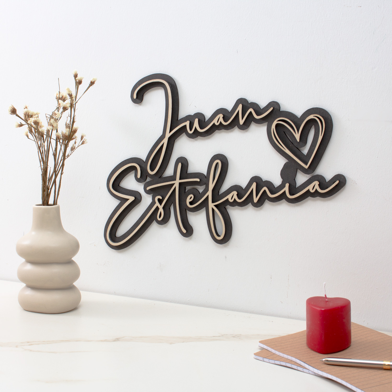 Como estos nombres de pareja en madera. Que dan calidez y personalidad a un espacio.