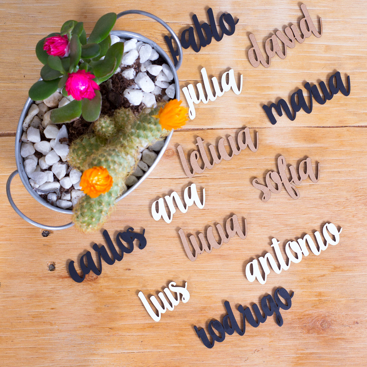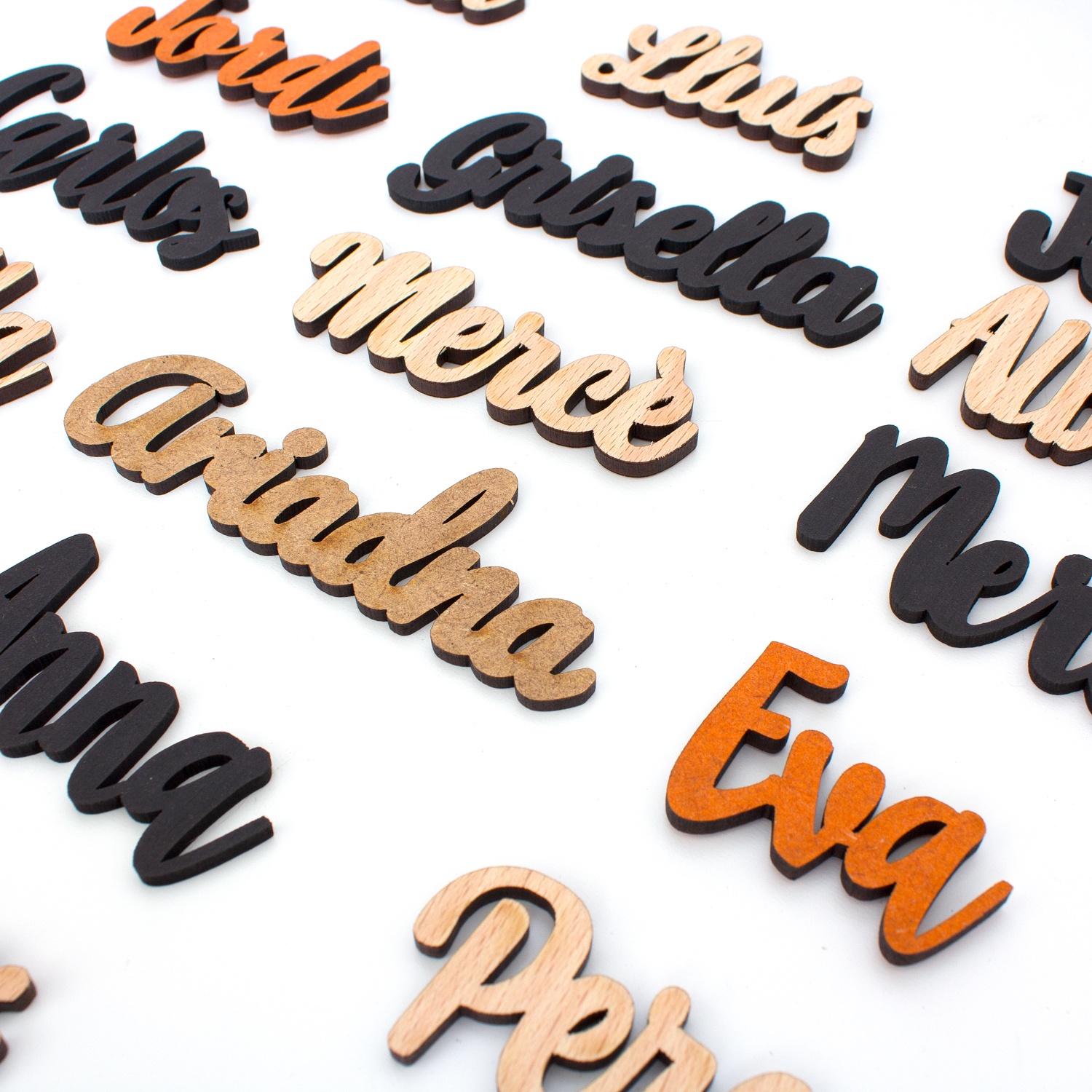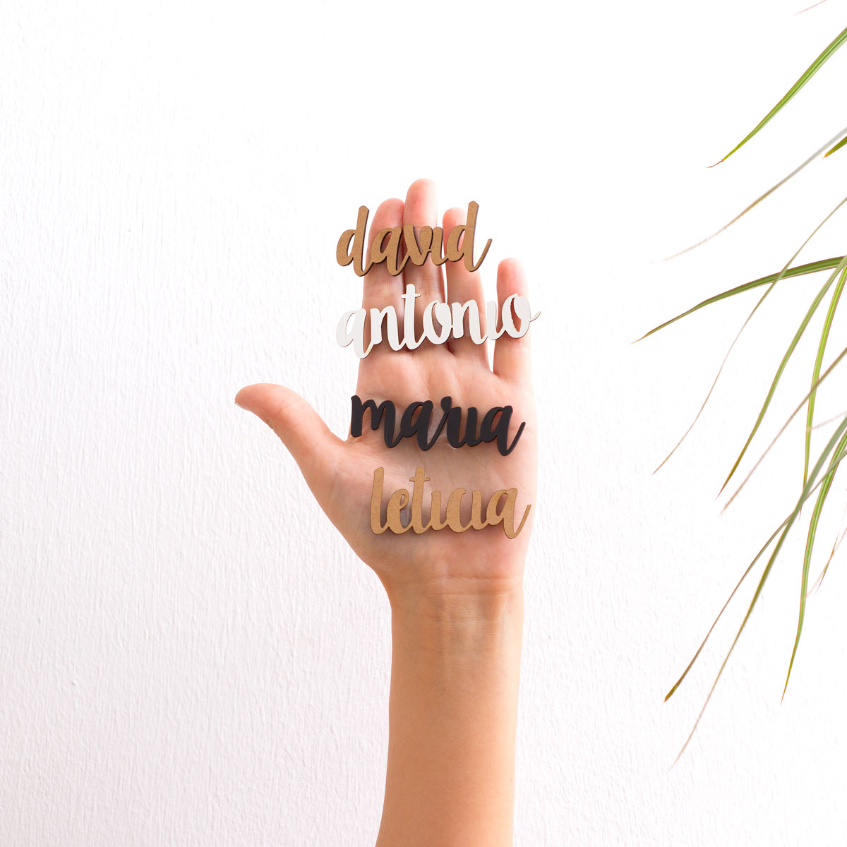 Nombres con tipografías bonitas para colocar encima de los platos o las servilletas de cada uno de los comensales.