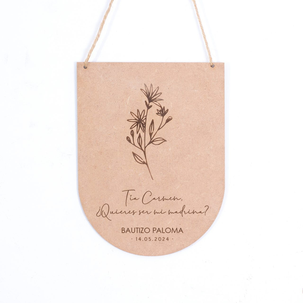 Placa Floral en Madera – Madrina y Padrino