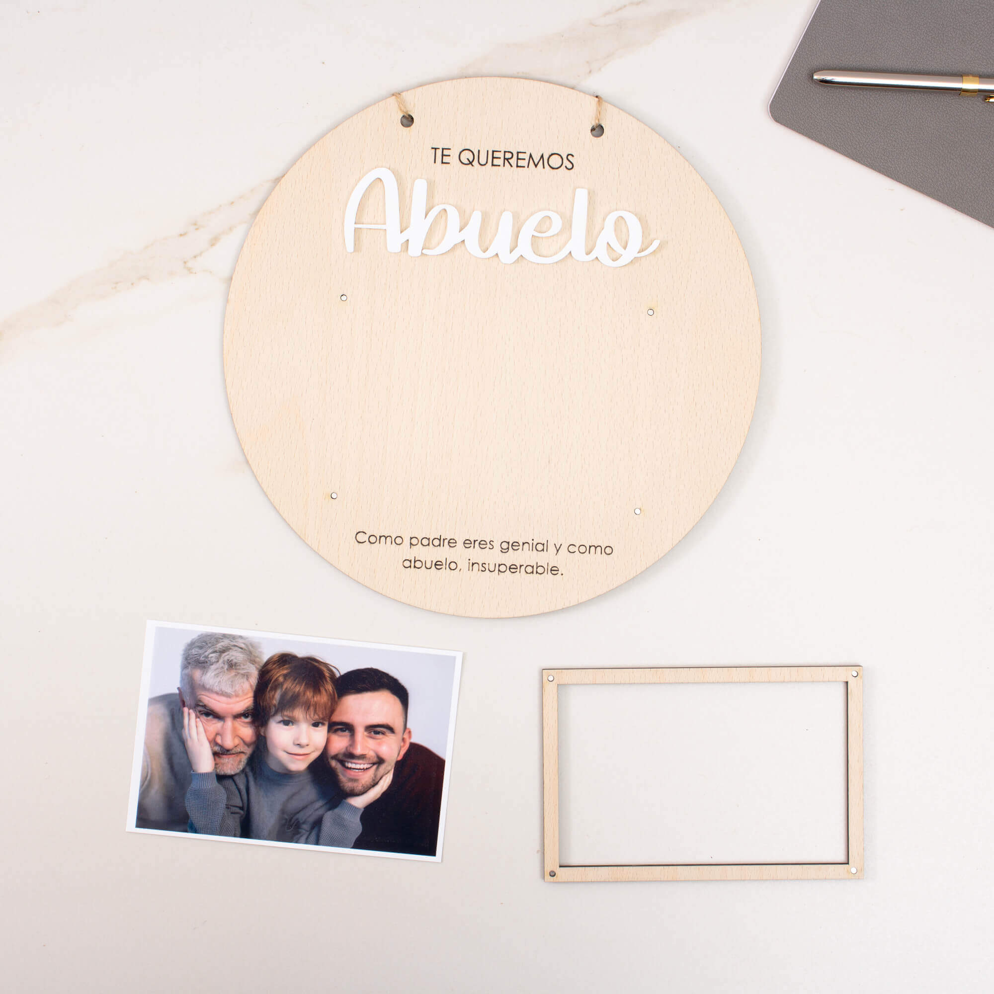 Nota: Las piezas puede presentar vetas o tonalidades ligeramente distintas a las que muestra la imagen. Igual que el grabado, que puede variar su profundidad y color en función del veteado de la madera en ese punto concreto.