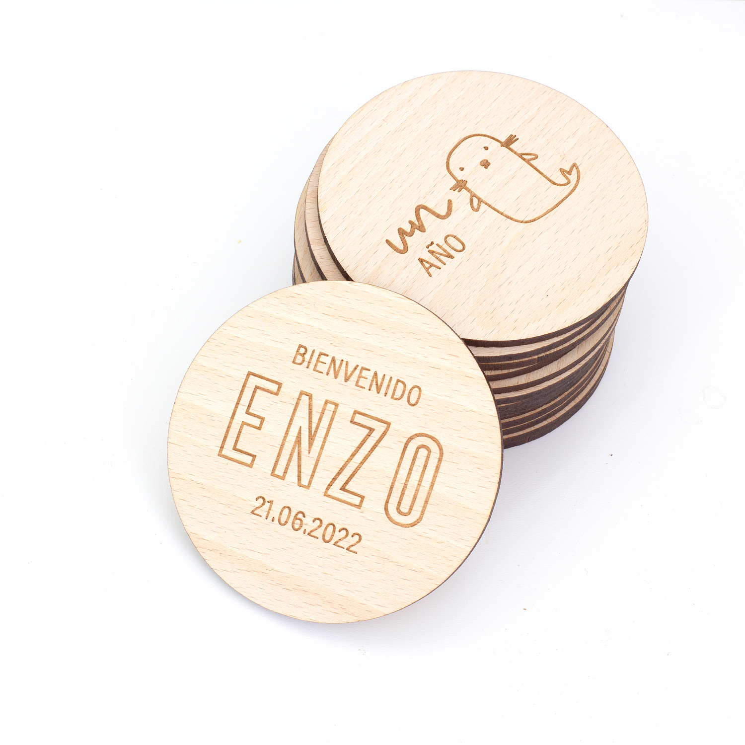 Incluye: 14 discos de madera: bienvenido, 1 mes, 2 meses, 3 meses, 4 meses, 5 meses, 6 meses, 7 meses, 8 meses, 9 meses, 10 meses, 11 meses, 12 meses y feliz cumpleaños.